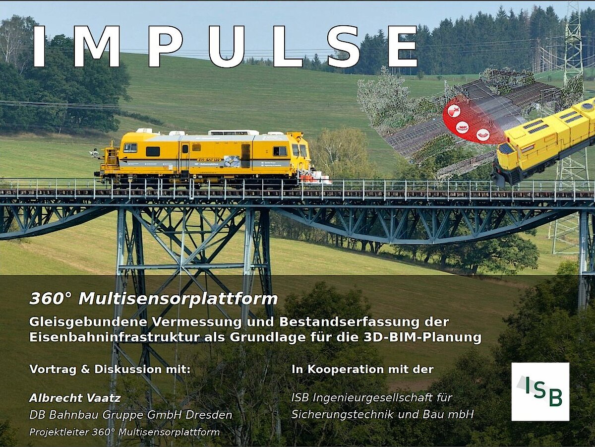 Fachvortrag mit Albrecht Vaatz (Projektleiter 360° Multisensorplattform, DB Bahnbau Gruppe GmbH Dresden) zur Bestandserfassung der Eisenbahninfrastruktur durch die 360°-Multisensorplattform.